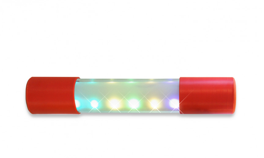• Для того чтобы включить трубу, нужно на торцевой части (цветная заглушка) нажать на центральную часть, до характерного включения кнопки.