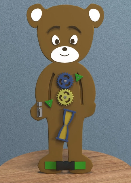 Бизиборд в виде медвежонка - отличный помощник родителей для совместных игр детей разных возрастов. Благодаря развивающей игрушке ваш ребенок сможет познакомиться с миром животных и любимым персонажем из сказок. Можно повесить на стену и украсить любую детскую комнату. Малыш может научиться самостоятельно играть, также вы можете участвовать в процессе. Бизиборд подходит для дома, для дошкольных учреждений, для медицинских клиник.