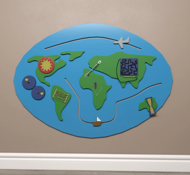 Бизиборд в виде планеты Земля – многофункциональная игра, которая улучшает моторику, чем больше ребенок совершает точных движений пальцами рук, тем активнее у него развиваются центры, отвечающие за речь. Различные оттенки, представленные на доске, формируют у ребенка понятия о цветах и их различию. Малыш больше воображает, у него подключается творческое мышление.