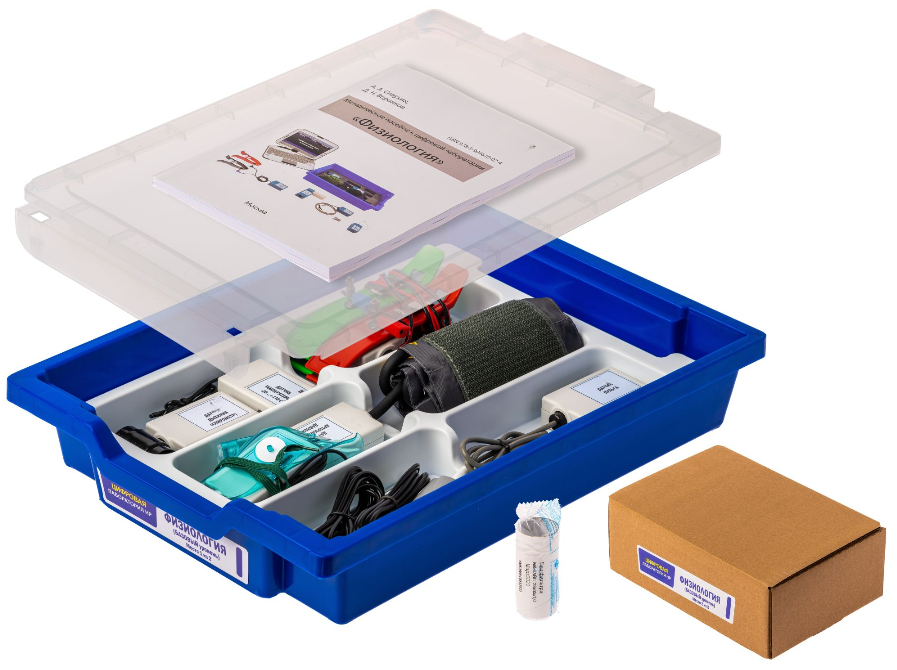 Цифровая лаборатория по физиологии (базовый уровень) включает в себя датчики, позволяющие проводить исследования по функционированию человеческого организма.
