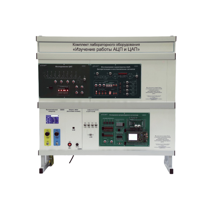 Комплект лабораторного оборудования «Изучение работы АЦП и ЦАП» предназначен для проведения лабораторно-практических занятий в учреждениях начального профессионального, среднего профессионального и высшего профессионального образования, для получения базовых и углубленных профессиональных знаний, и навыков.