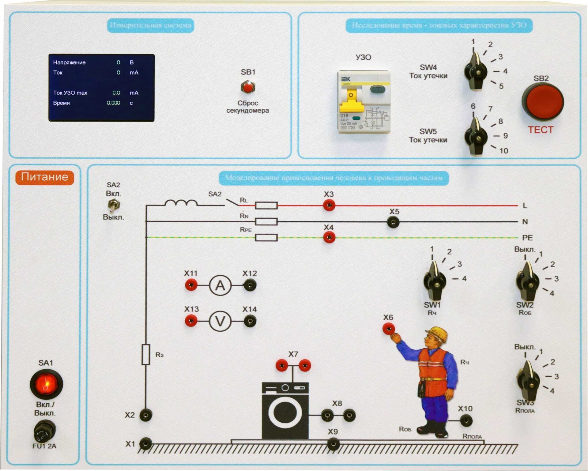 Главная Каталог Учебно-лабораторные комплексы Типовой комплект учебного оборудования «Устройство защитного отключения»