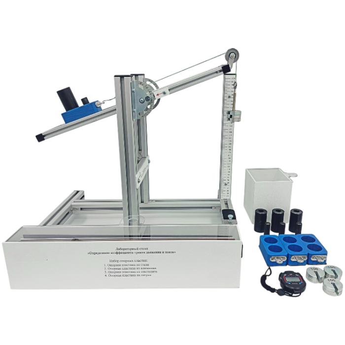 Лабораторный стенд «Определение коэффициентов трения скольжения и покоя» предназначен для определения коэффициентов трения скольжения и покоя при различных сочетаниях материалов соприкасающихся тел.